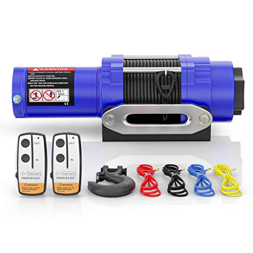 Super Deal Product BIGTUR 12V 4500lb Electric Winch Towing Synthetic Rope Winch Off-Road Recovery with Wireless Remote Control IP67 Waterproof Winch for SUV, Truck, ATV, UTV (H-Model, Blue) A quick review